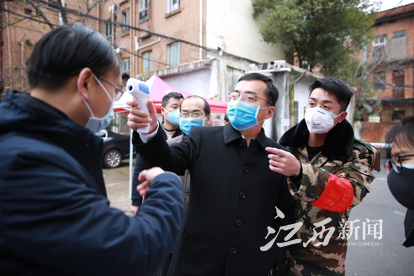 图为青山湖区区长王强来华安社区检查指导防疫工作。