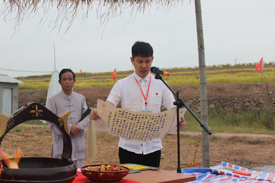 随后,主持人郑战江宣读祭文,举行了隆重的五谷神农祭祀活动。
