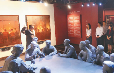 7月1日,“七一”主题活动在中共一大会址举行。图为党员在聆听“初心与使命”情景党课并参观陈列展。 |